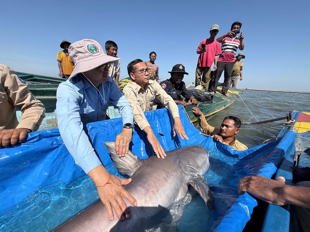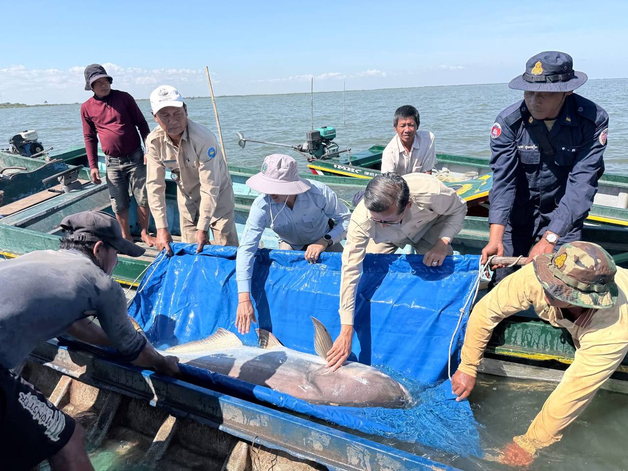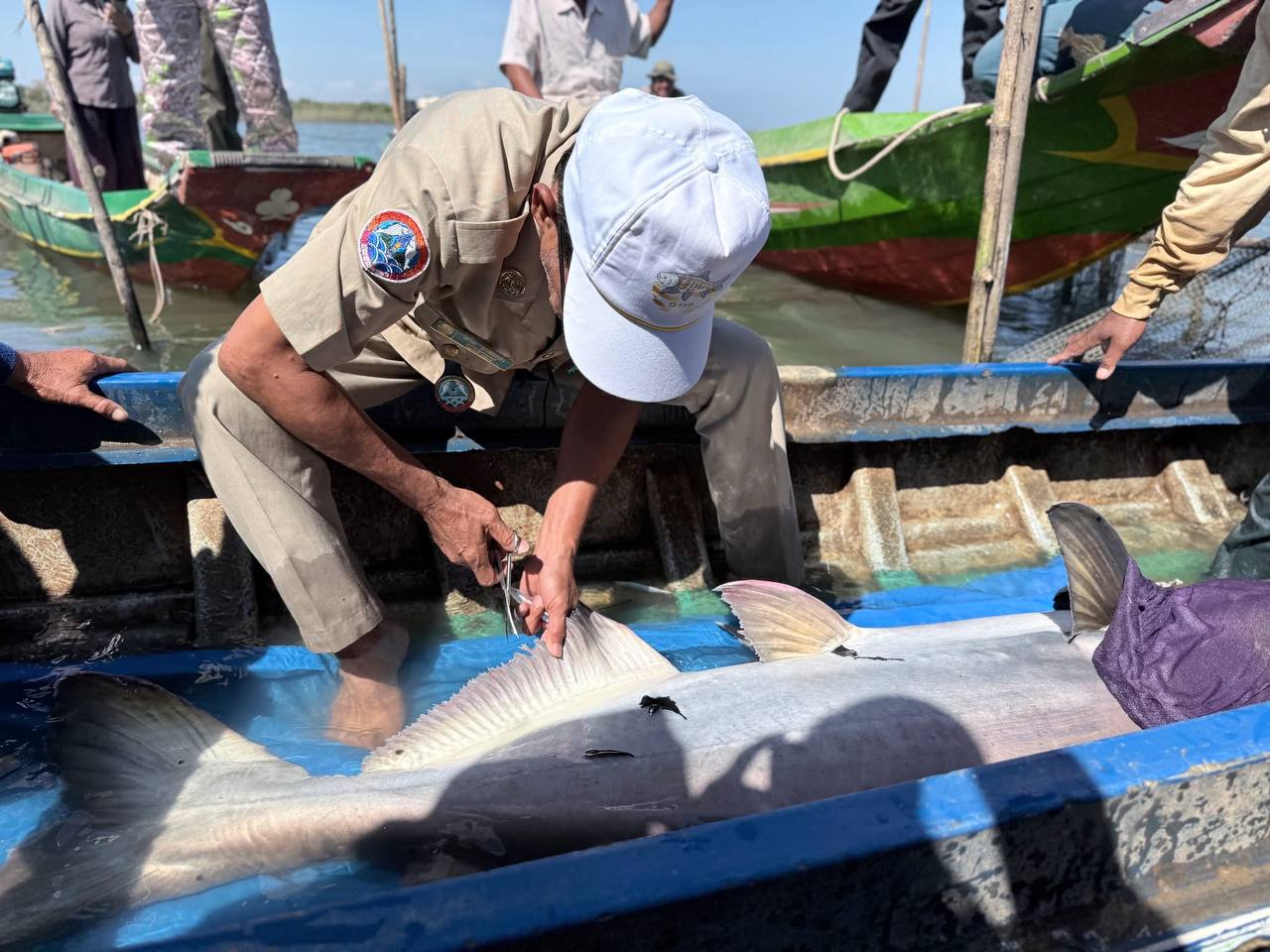 បើតាមអង្គការអច្ឆរិយៈនៃទន្លេមេគង្គ បានឱ្យដឹងថា លោក ឈិត សេងហ៊ឹង អាយុ៥៩ឆ្នាំ រស់នៅក្នុងឃុំកំពង់ហ្លួង ស្រុក ក្រគរ ខេត្ដពោធិ៍សាត់ គឺជាអ្នកបានប្រទះឃើញត្រីរាជមួយក្បាលចូលក្នុងលបឡុករបស់គាត់។ បុរសអ្នកនេសាទរូបនេះបានរាយការណ៍ដោយស្ម័គ្រចិត្តអំពីការចាប់បានត្រីរាជមួយក្បាលនេះ ដើម្បីឱ្យក្រុមអភិរក្សសត្វបំពាក់ស្លាកសម្គាល់ និងលែងចូលទៅកន្លែងអភិរក្សជលផលវិញ។