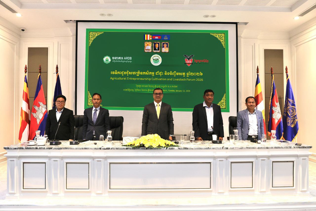 ភ្នំពេញ៖ ឯកឧត្តមបណ្ឌិត កៅ ថាច ប្រតិភូរាជរដ្ឋាភិបាលទទួលបន្ទុកជាអគ្គនាយកធនាគារ អភិវឌ្ឍន៍ជនបទ និងកសិកកម្ម (ARDB)និងឯកឧត្តមបណ្ឌិត អោម សេងបូរ៉ា ស្ថាបនិកវិទ្យាស្ថានស៊ីអីអូ នារសៀលថ្ងៃទី១៣ ខែមករា ឆ្នាំ២០២៦នេះ បានសហការរៀបចំវេទិកាជួបជុំសហគ្រិនកសិកម្មដាំដុះ និងចិញ្ចឹមសត្វ ឆ្នាំ២០២៦ ដែលរៀបចំឡើងនៅទីស្នាក់ការកណ្តាលធនាគារ ARDB ស្ថិតនៅសង្កាត់ព្រែកលៀប ខណ្ឌជ្រោយចង្វារ រាជធានីភ្នំពេញ។