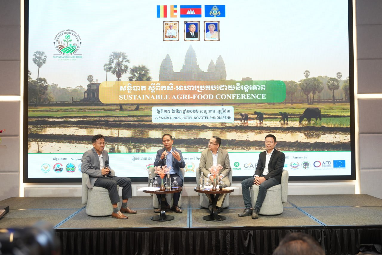 ភ្នំពេញ៖ ឯកឧត្តមបណ្ឌិត កៅ ថាច ប្រតិភូរាជរដ្ឋាភិបាលទទួលបន្ទុកជាអគ្គនាយកធនាគារអភិវឌ្ឍន៍ជនបទ និងកសិកម្ម កាលពីថ្ងៃទី២៧ ខែមីនា ឆ្នាំ២០២៦ អញ្ជើញចូលរួមថ្លែងសុន្ទរកថាគន្លឹះក្នុងសន្និបាត ស្តីពីកសិចំណីអាហារប្រកបដោយនិរន្តរភាព ដែលរៀបចំឡើងដោយក្រុមហ៊ុនអេមរុ រ៉ាយស៍ ក្រុមហ៊ុនសាជីវកម្មសហគមន៍កសិកម្ម និងសហព័ន្ធស្រូវអង្ករកម្ពុជា នៅសណ្ឋាគារណូវ៉ូតតែលភ្នំពេញ។