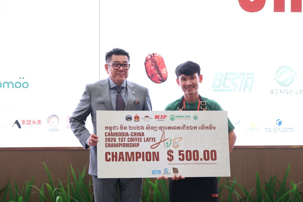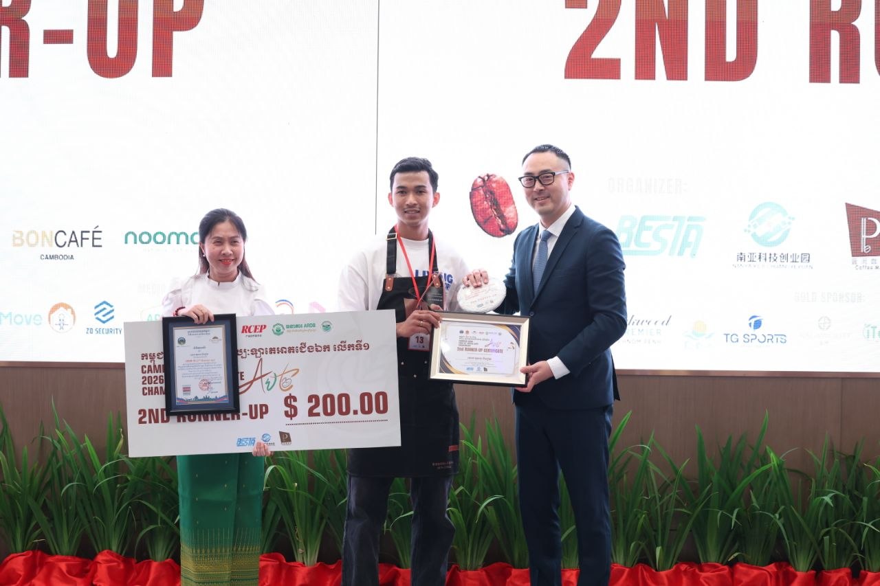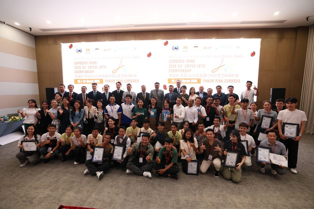 ភ្នំពេញ៖ ព្រឹត្តិការណ៍ “ការប្រកួតសិល្បៈកាហ្វេឡាតេអាតជើងឯក កម្ពុជា-ចិន លើកទី១ ឆ្នាំ២០២៦” (Cambodia – China 2026 1st Coffee Latte Art Championship CLA)” បានប្រព្រឹត្តិទៅរយៈពេល២ថ្ងៃ ចាប់ពីថ្ងៃទី២៨ -២៩ ខែមីនា នៅសណ្ឋាគារ OAKWOOD ONE PARK និងបានបិទបញ្ចប់ប្រកបដោយជោគជ័យ នារសៀលថ្ងៃទី២៩ ខែមីនានេះ ក្រោមអធិបតីភាពឯកឧត្តម ឱក តារារិទ្ធ រដ្ឋលេខាធិការក្រសួងទេសចរណ៍ និងមានការចូលរួមពីឯកឧត្តម បាន លឹម អគ្គនាយករងធនាគារអភិវឌ្ឍន៍ជនបទ និងកសិកម្ម (ARDB) តំណាងដ៏ខ្ពង់ខ្ពស់ឯកឧត្តមបណ្ឌិត កៅ ថាច ប្រតិភូរាជរដ្ឋាភិបាលទទួលបន្ទុកអគ្គនាយកធនាគារអភិវឌ្ឍន៍ជនបទ និងកសិកម្ម (ARDB) លោក Johnny Mo នាយកប្រតិបត្តិអង្គការ CICC-YDD ព្រមទាំងតំណាងក្រុមហ៊ុនគីរីកាហ្វេ សណ្ឋាគារ OAKWOOD ONE PARK ក្រុមហ៊ុន BESTA រួមនិងដៃគូឧបត្ថមជាច្រើនទៀត។