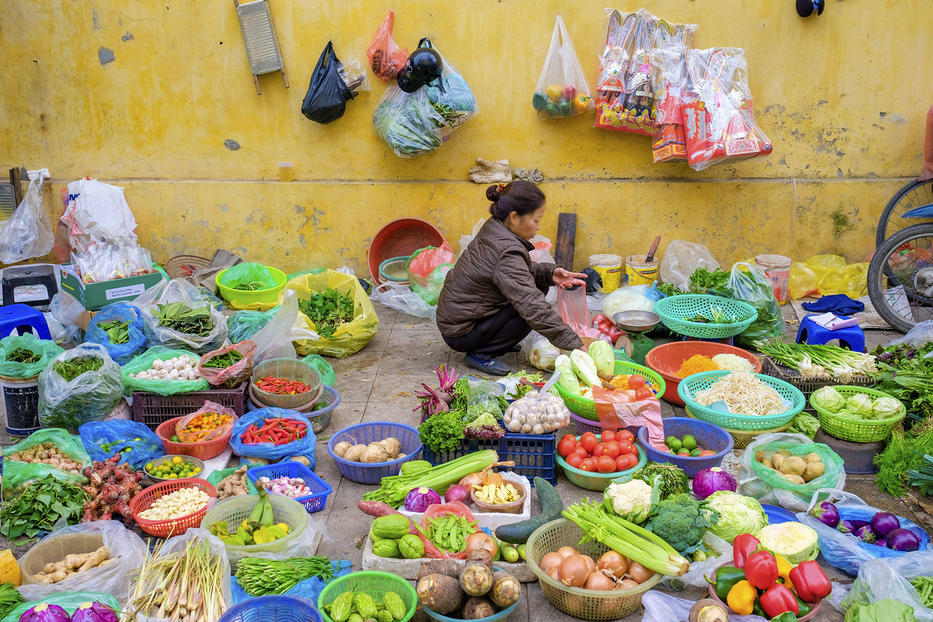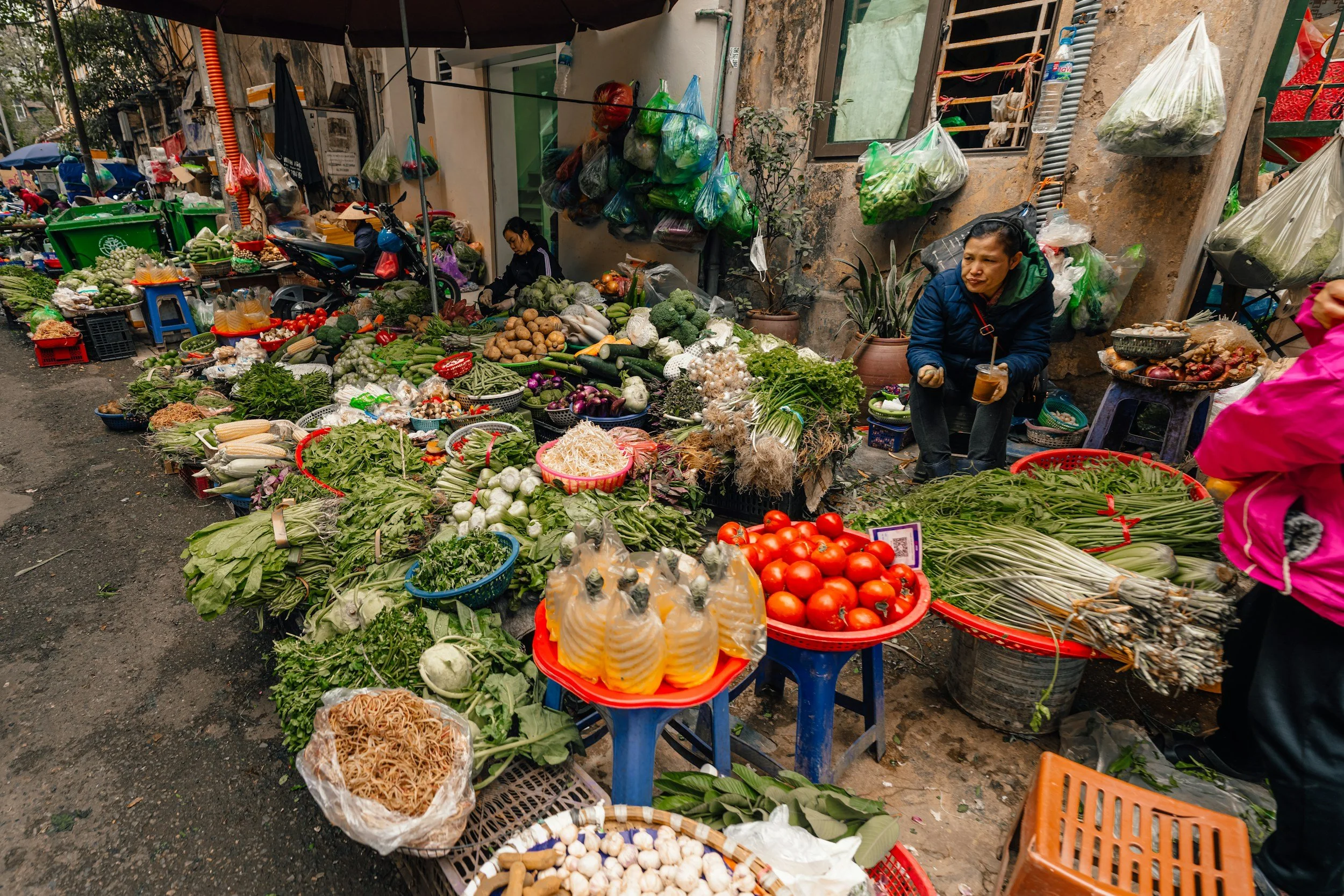 នៅតាមផ្សារខ្លះទៀត តម្រូវការបន្លែមានការកើនឡើងយ៉ាងខ្លាំង ដោយមានមនុស្សឈរតម្រង់ជួរតាំងពីព្រឹកព្រលឹម ដើម្បីរងចាំទិញបន្លែ។ ជីរនាងវងមានតម្លៃពី២៥ ០០០ ទៅ៣០ ០០០ដុង ឬស្មើពី០,៩៧ ទៅ១,១៧ដុល្លារក្នុងមួយគីឡូក្រាម, ស្ពៃខ្មៅមានតម្លៃ១៥ ០០០ដុង ឬស្មើនឹង០,៥៩ដុល្លារ ក្នុងមួយបាច់ ចំណែកផ្កាខាត់ណាមានតម្លៃរហូតដល់៥០ ០០០ដុង ឬស្មើនឹង១,៩៥ដុល្លារ ក្នុងមួយគីឡូក្រាម។